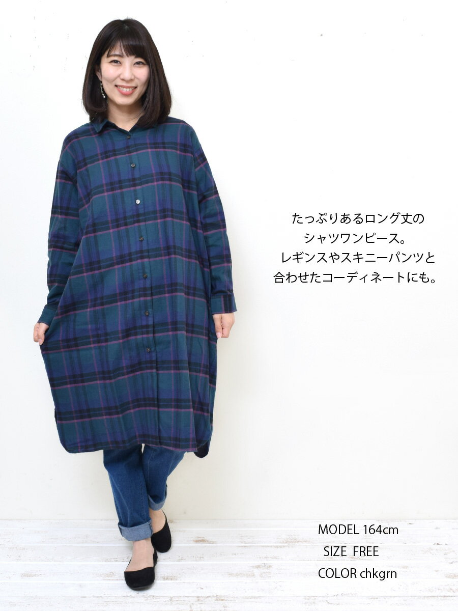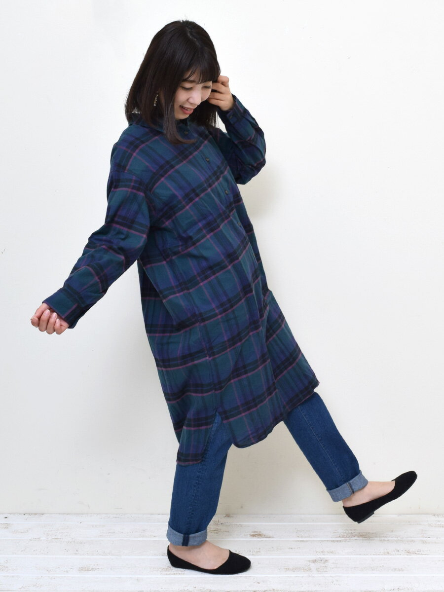 ロングタイプ追加!羽織りとしても使える!起毛チェック柄シャツワンピース