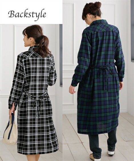 \店内3,900円(税別)以上のお買い物で送料無料中/≪プライスダウン30%OFF≫バックタックシャツワンピースレディース,ワンピース,ワンピ,バックシャン,チェック,ハトマスト,春トレンド,体型カバー,シャツ,シャツワンピ