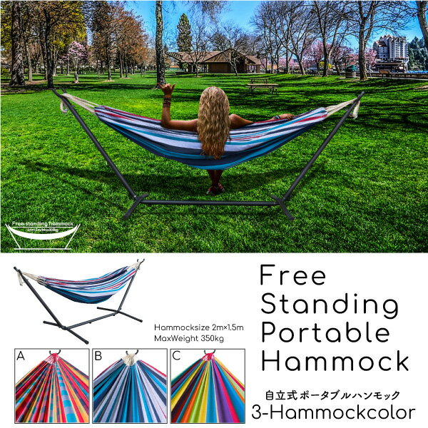 ハンモック 自立式 専用スタンド付 簡単組立 工具不要 耐荷重350kg 高さ調節可能選べる3色 専用キャリングケース ベッド ソファー 屋内 屋外 アウトドアキャンプ インドア 生地手丸洗いOK 快眠 快適 あす楽対応 @a927